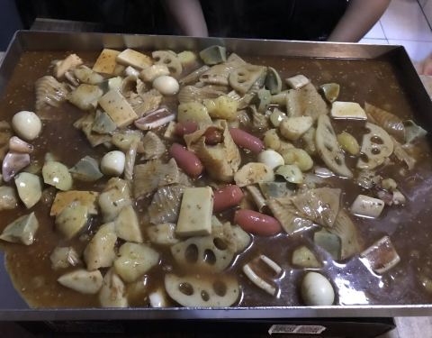 可以选择自己喜欢的菜品,小店不太大,但是人很多,主食有画卷,还可以放方便面,味道不错,还有炸串