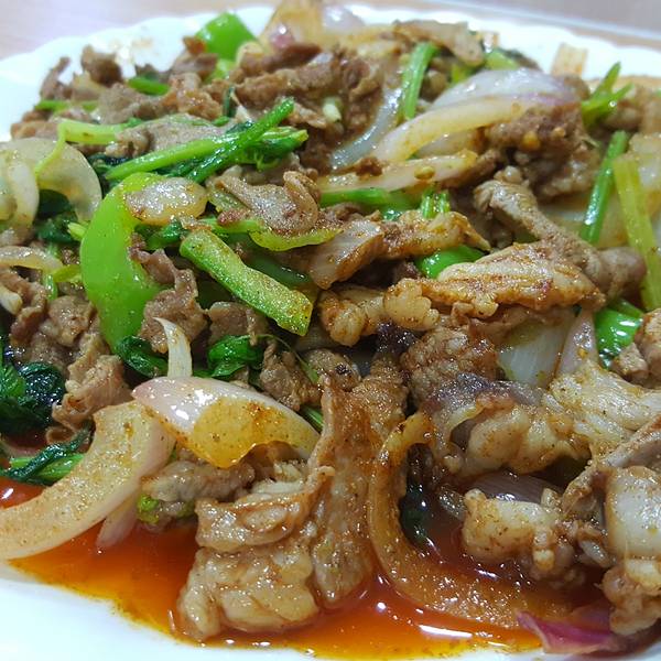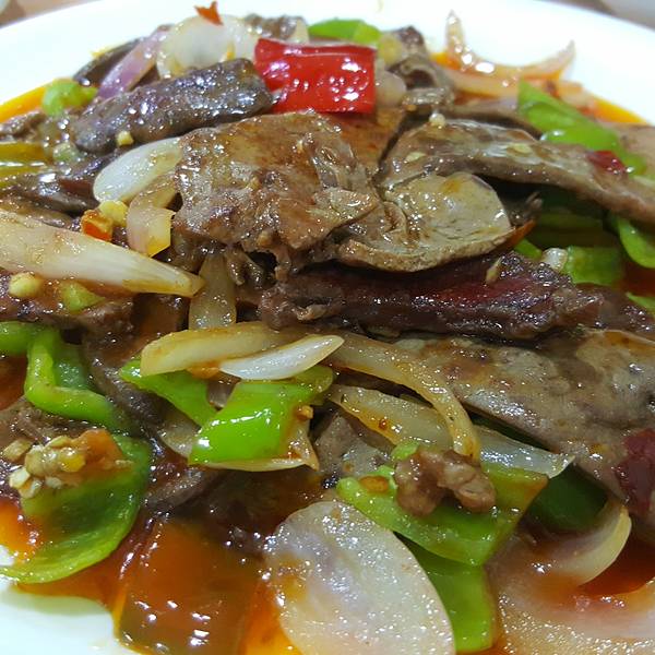 位置很好,拌黄瓜和土豆片味道一绝,沙葱炒蛋是这一带几个城市的特色,羊肉较贵只点了份葱爆的有些咸...