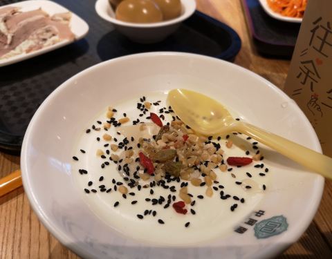 ...友吃了顿简餐,他们尤其去甜醅,和牛肉拉面很感兴趣,牛肉也做的很好,配上一杯八宝茶,很有民族风味