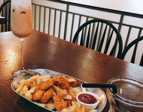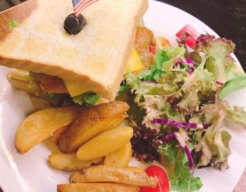 餐品不错 份量足点了两个餐[美式鸡扒堡]蔬菜沙律的蔬菜种类还算不错菜也挺新鲜的薯角香脆鸡扒堡里面分别是一层蔬菜一层鸡扒一层芝士片面包上的酱和鸡扒堡十分的搭配而且份量足 吃了超级饱[德国香肠餐]这份餐就稍微更简单一些香肠的味道比较特别相信大家探咖啡馆也有时会吃到不过这边的德国肠更大份一些有些咖啡馆一般配的是小份的肠不过乘以2这个味道更好一些我个人更喜欢这个味道摆盘虽然简单不过摆拍也很好看这间咖啡馆的简餐做得算是挺不错的了主要是价格来说真的很划算份量也很足下次会再来!