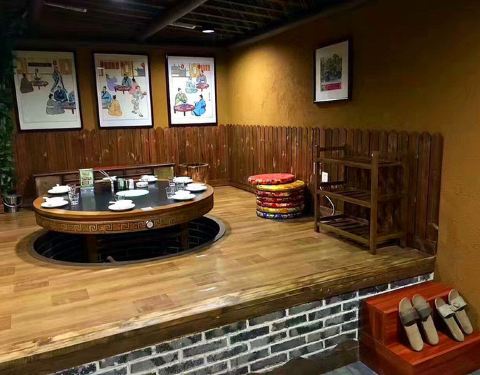 - 内部装修风格具有鲜明的满族特点,充满东北农村生活气息,大堂以方桌为主,包间提供了传统的东北下炕式圆桌