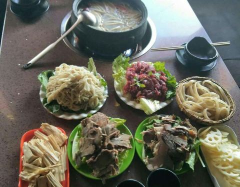 听当地小姐姐的推荐去吃了牦牛汤锅,说这家正宗牛骨熬汤。 味道还不错,量很足,店也很大