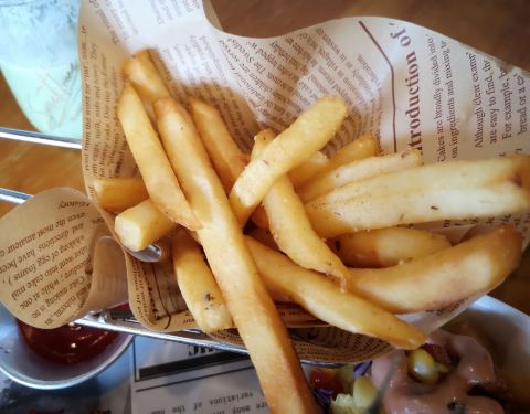 总的来说在这边的性价比还过得去,两个人要吃得很饱的话,大概也需要人均80多吧,我们这种吃一个下午茶也要差不多100,也没有什么太多的优惠,只有薯条有个半价。