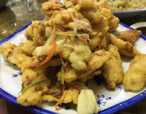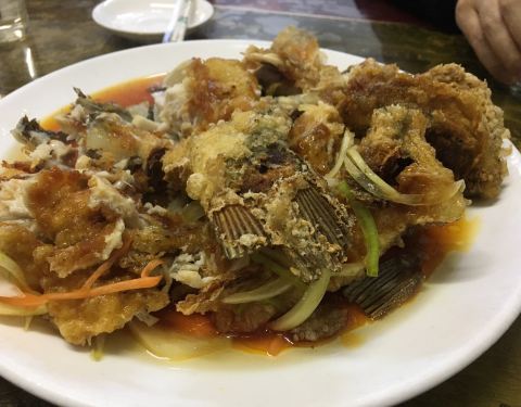 第一次来佳木斯,被朋友带到这家吃。果然是东北餐馆,分量太足了,三个人吃四个菜,感觉6-7个人都可以吃。 浇汁鱼不错,鱼炸好了,浇汁,然后拨开。味道也不错,比松鼠桂鱼好吃多了。 锅包肉分量太大了,一般起码30坨,三个人不可能吃完。 还有最后的甜点,黄油炸的皮里面包的豆沙,太足了。