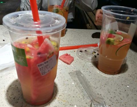 很棒的水果茶,特别大杯,每次过来都会买上一大杯,边喝边逛。