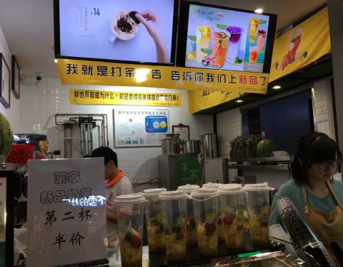 冻柠红茶对我口味,奶绿也不错。 水果茶只能是特色,个人不爱喝。