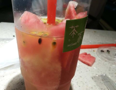 很好吃哟。买了超级水果茶和水果烧仙草。。就爱银泰的茶家。。水果好吃种类又多。。