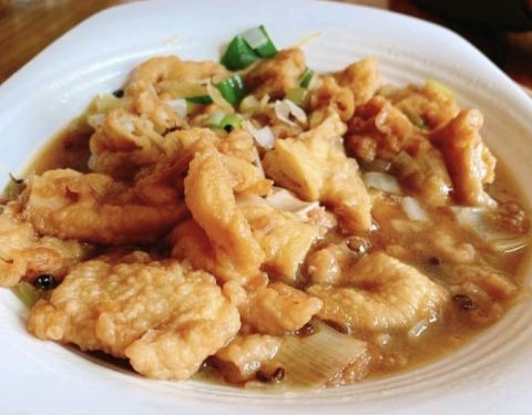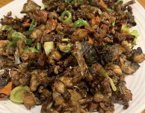 鸡肉百分之八十是糊的,剩下的百分之十咬不动,另外百分之十勉强能咬动,吃过的最糟糕的炒鸡,心情太差!