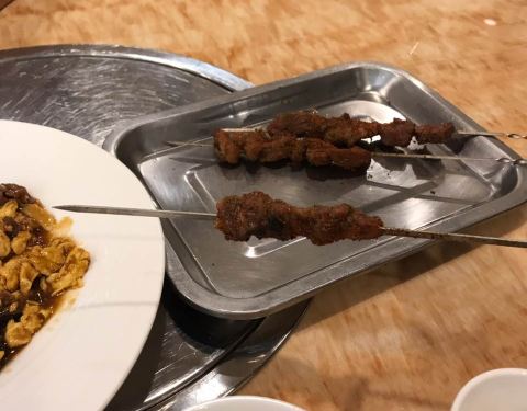 肉串不让放辣椒结果还是放了挺辣的,醋溜苜蓿看不见肉和木耳,基本上全是鸡蛋,菜量还小,肉饼那叫一个咸,齁咸齁咸的,以后不会再来这里吃饭了