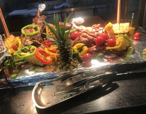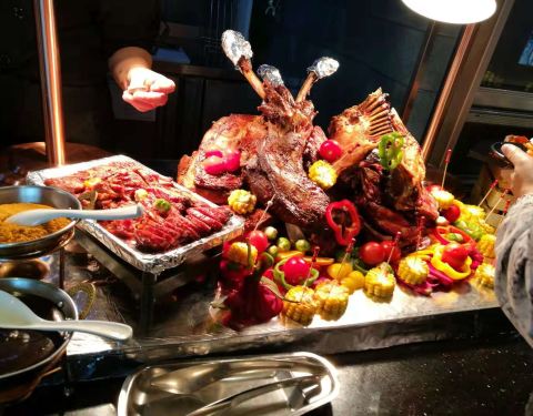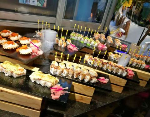 大闸蟹不限量,畅吃,各种味道的都有,个头都中等,味道一般。 寿司类,品种挺多,鳗鱼三文鱼等寿司都齐全,味道不错。 羊肉串,一般,肥瘦都有,有点咸。