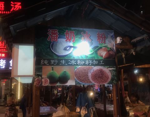 荔波古镇美食街位于云南省黔南布依族苗族自治州荔波县,在这里你可以吃到云南的各种特色美食,像烤乳猪、包酱豆腐、潘奶冰粉等等。晚上的时候人还是挺多的。