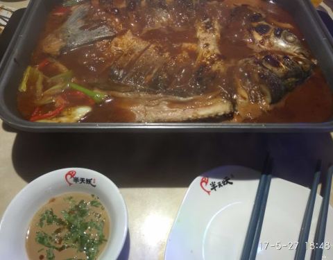 来滨州在万达广场看到的这家店,点的青花椒味烤清江鱼,味道不错,肉质鲜美,2-3个人吃的量。红糖冰粉也比较清口,特别是吃辣一点的菜时。大叉烤肉量太大,适合人多或者男士吃,整整三大串,应该是鸡肉,几位女士...