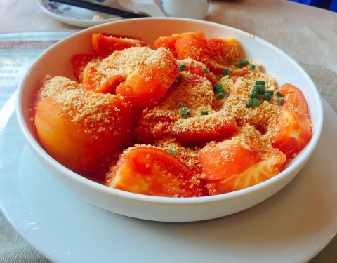 五星推荐菜 独特菜色,一开始以为是凉拌的,其实是蒸过的 番茄软软的,香甜且暖 搭配上陈皮是别...