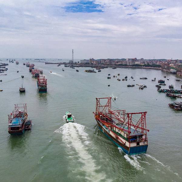 ...底下尽情地绽放,万众期待的开海仪式马上开始,渔船有序的驶出渔港,远方等着他们的,是希望,是丰收