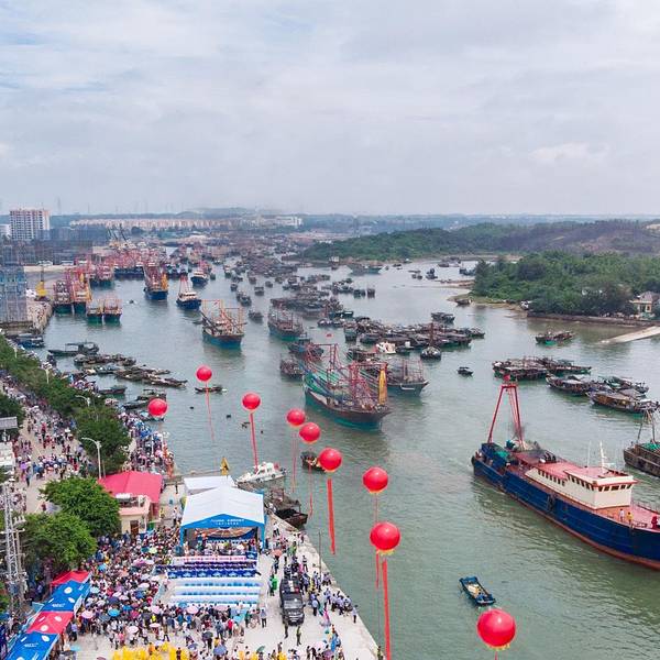 8月18日的清晨,或者你还在睡梦中,但这一天对于防城港来说却意义非凡,以“畅游北部湾,渔香防城港”为主题的2018中国?北部湾开海节在企沙渔港举行了盛大的开幕仪式。企沙渔港渔民组织疍家非遗文化展示队等开展盛大巡演,表达在新的捕捞季里航行平安、渔业丰收的愿望,而此行最精彩的莫过于能现场观摩成千上万的渔船拔锚启航。今年是防城港市建市25周年、建港50周年,本届开海节可以说是防城港市自获批成为边境旅游试验区以来的一项重大文化旅游活动,让广大游客充分感受千年渔家传统民俗文化的传承与发展,打造一张响亮的城市名片。防城港经开区,是广西最大的临港工业基地,占有广西沿海53.0%的生产性泊位和54.1%的万吨级以上泊位,而企沙渔港却是广西第二大渔港、防城港市最重要的渔业生产基地,年捕捞量约5.57万吨,产值约3.84亿元,分别占全市水产品捕捞量和产值的49.00%、52.47%,此次活动的主会场定址于此无疑是最佳的选择。还没到开海仪式,成群结队的渔船早早就停泊在企沙渔港的海上,蓄势待发,颇为壮观。恰逢周末,前来围观的市民多不胜数,而民俗巡演更把现场气氛带到高潮。主会场的民俗表演也是精彩到位,充分展示了防城港的渔家风情。伴随着欢呼声和掌声,五彩礼花在蓝天底下尽情地绽放,万众期待的开海仪式马上开始,渔船有序的驶出渔港,远方等着他们的,是希望,是丰收。