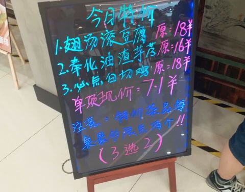 特价只有一个!其他都没有!点了其他,总体还好,就是5个人吃了9碗米饭!2块一份米饭,花了18元。有点贵