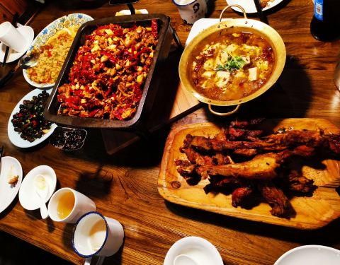 用以前的粮食仓库改造的,所以空间很大,装修很有特色,新疆民族特色美食很多都有,上菜速度也很快。馕坑肉,土火锅,拌面,炒面都非常地道。