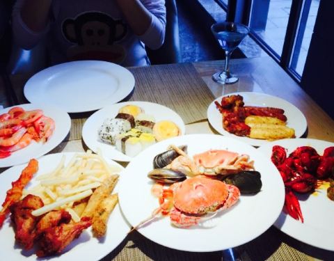 有我喜欢的落地窗这样看起来整个大厅很整洁,不是周末生意都很好目前需排号,建议早去,菜品新鲜就是种类不是非常多,但对得起团购的价位,鸡尾酒还限量每人只能取一杯,饮料正如其他网友说的是勾兑的,整体好评。