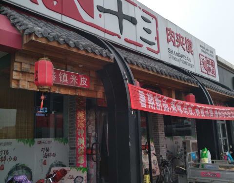 在银滩的时候去市区逛街,看到了这家陕十三肉夹馍店,蛮有陕北特色的,除了肉夹馍和米面皮,各种面食、米线、盖浇饭都有,去的时候可能过了饭点米皮已经卖完了,要了凉皮、羊肉泡馍和红烧茄子饭,肉夹馍当然也要...在银滩的时候去市区逛街,看到了这家陕十三肉夹馍店,蛮有陕北特色的,除了肉夹馍和米面皮,各种面食、米线、盖浇饭都有,去的时候可能过了饭点米皮已经卖完了,要了凉皮、羊肉泡馍和红烧茄子饭,肉夹馍当然也要来几个尝尝,外皮很酥,肥瘦相间,蛮香的,羊肉泡馍好大一碗,盖浇饭很家常,凉皮里面放黄豆还是第一次见!