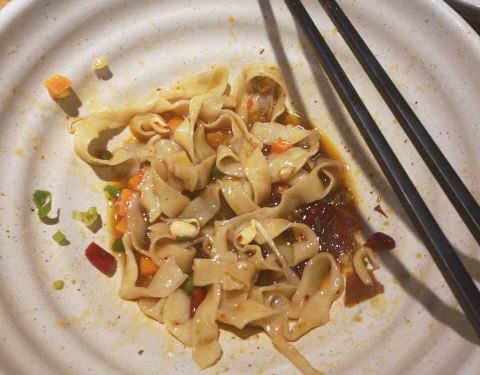 麻辣鸡拌面挺好吃的,就是有点咸。油泼面不建议,因为面不好,也没什么味道~~~一般般吧