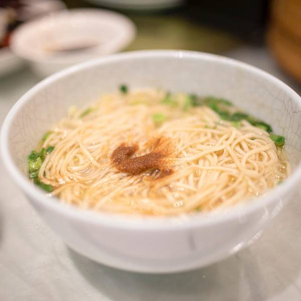 据说兴化早茶和广州扬州早茶一样出名,兴化人的一天,是清晨的早茶开始的,扬泰地区有句俗语“早上皮包水,晚上水包皮”,皮包水就是早上喝早茶,喝完早茶就该水包皮,水包皮就是泡澡堂。第二天起个大早,虽然酒店里有丰盛的自助早餐,我们还是决定去感受一下兴化人的早餐氛围。 清风茶社在一座酒店的二楼,兴化人吃早茶,精致中透着一些仪式感,讲究:一茶三点一面。第一道喝福香茶,旧时福香茶是用安徽魁针,珠兰和杭州龙井配制的;第二道吃浇头,也就是应时小菜。第三道烫干丝;五味干丝烫干丝 第四道吃点心,烧卖、蟹黄包、蒸饺是兴化的早茶三宝。除了早茶三宝,兴化的早茶点心还有很多中可以挑选,藕夹子、蟹黄包、酥皮春卷、插酥脆饼、油炸端子、豆腐花、油炸臭干、糯米烂藕、炕山芋、炸油饼等等。蟹黄大包劲道爽实,皮薄馅多,卤鲜味美最后一道鱼汤面,整个心脾胃就舒爽了。