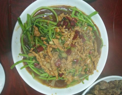 他家的菜量挺大的,味道也不错,都是农家菜的味道,有的是自己家种的菜,没有农药,不错,吃着放心。