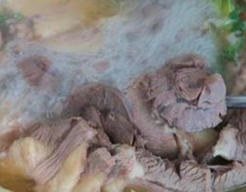 羊杂羊肉汤比较浓,羊肉是炒过的吃起来,就是少了原汤那个味道了,个人还是比较喜欢白灼原汁原味的味道,这家的汤头浓厚了很香,肉片也切的厚实,实惠哈。