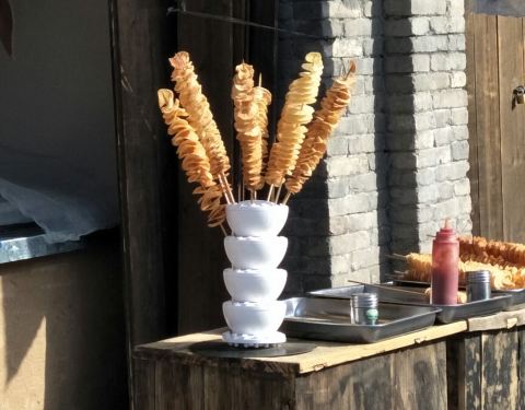 到这里尝试了一下推荐的几家店,黑闺女饺子只有韭菜鸡蛋和猪肉大葱两种馅儿,味道很好,按份买,一份十五个,性价比很高。白家罩饼的肉和汤都很鲜,而且会放很多葱,味道非常浓郁。剩下的竹筒棕子、炒年糕、炸蝎子等等也是各具特色。