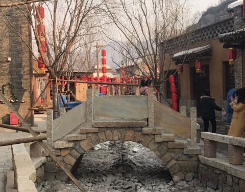 和古北水镇比差距很大,规模不大,可能是我们初一去的,有好多店都没开,吃的方面小吃居多,缸炉烧饼很赞,正经饭馆都没有开,住在恋乡风情客栈环境还不错,客房设施很新,也很有特色,可惜没有早点提供。