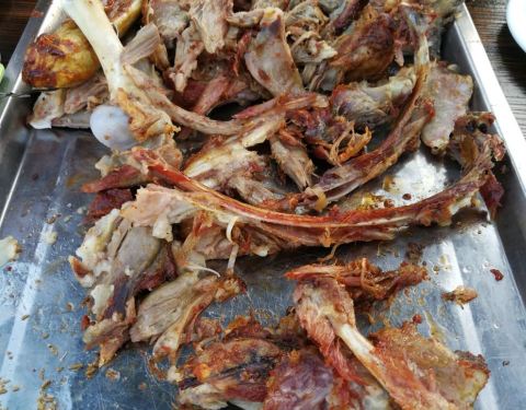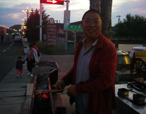口味一般,有的菜咸得要死(我们点的老虎菜),有的又没味,比如浇油羊肚。不过,烤的羊腿和羊排价格比隔壁家实惠,288一套,隔壁家喊价688一套,我们五个人也吃不完,结果隔壁家根本没有人,全都到这家吃来了。特色的凉拌红梗,就是山楂的味道,非常酸,略带甜,大家都觉得稀奇,每桌都去点。烤羊肉串不推荐,5元一串,量很小不说,肥肉太多,一共4小坨,就是两个廋的两个肥的,根本咽不下去