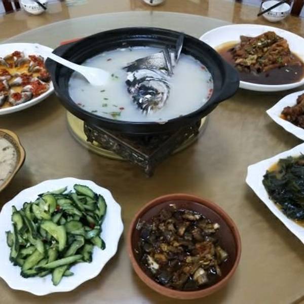 很好吃,特别是鱼头汤,不猩,陪着鱼肉吃更好吃了。鱼肉也很嫩,入口即化,红烧的味道也清淡,这两样适合口味不重的人(`・ω・)我比较喜欢素菜,都是店主自家养的,很新鲜。