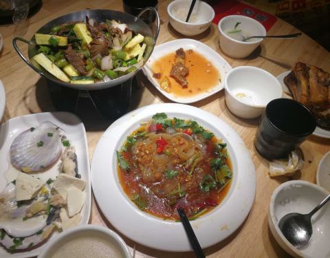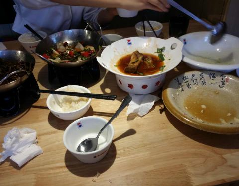 来第三次了,这次吃居然有点酸。茶树菇不好吃,肉少,蹄髈一般般,有点怪味,肥肠也有点酸。不知道为什么。上次来是挺好吃的,这次很失望