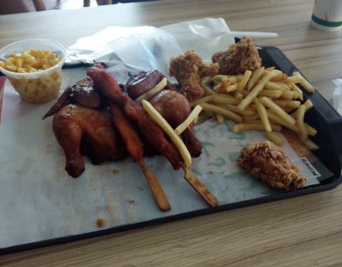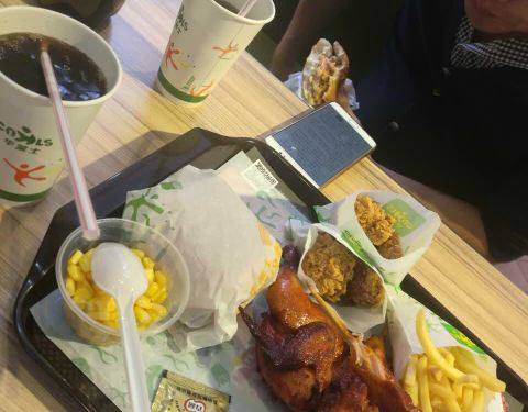 全家桶很大份,两个人吃足够吃的饱饱的,今天服务员态度很好很随和,送餐很及时