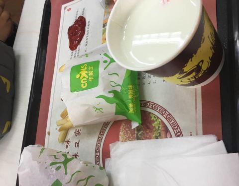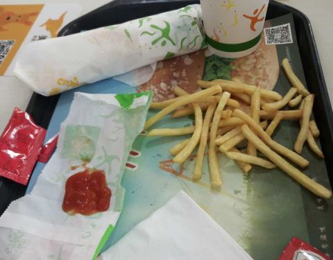 东西都还可以。但是汉堡里面没有生菜。感觉总有点儿不完美。