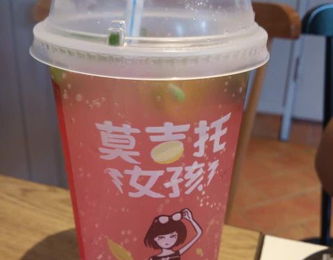 新上的愤怒的汉堡搭配莫吉托女孩鸡尾酒,闷热的午后,不错