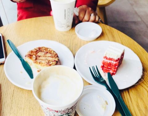 服务生推荐买两份点心加六元可以换购超大杯咖啡,平常去星巴克只点纽约芝士和黑森林两种蛋糕,还没点...