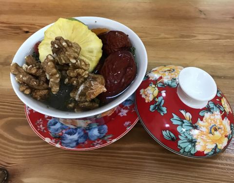 味道很正,菜量很大很充足。一看就是有信仰的人,墙上挂着“面多面少跟我说,加面不要钱!”他家的大杯茶很滋养哦,有核桃,奇异果,菠萝干、枸杞红枣和冰糖,味道甜美入肺!