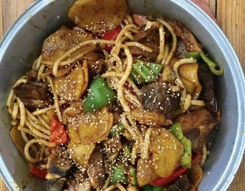...出名的萨巴赫餐厅相邻,点了网友推荐的牙签羊肉,丁丁面,还有糖醋白菜,味道不错,下次再试试其他的