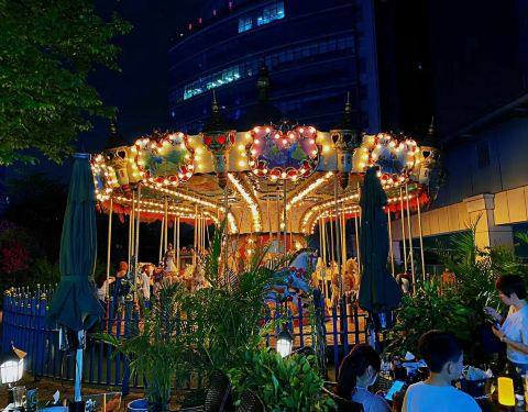 我们吃完风格鲜明的重庆老火锅儿后,朋友们再带我们来九里铺酒馆喝个宵夜酒,我觉得我就不是来喝酒的,不得不承认,我就是一个行走的饭!桶!酒吧里面旋转木马也是极少见的,可以。