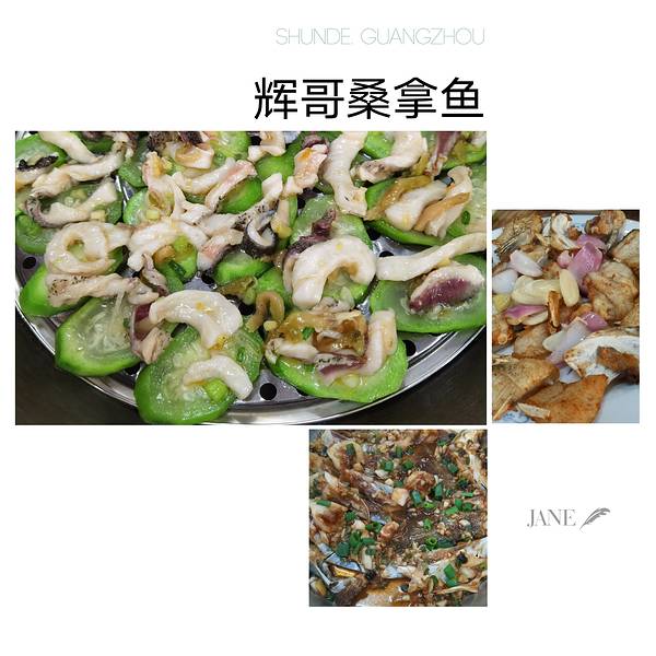 辉哥私房菜,到顺德后的第一顿正餐,来到很出名的辉哥私房菜,环境一般,服务在人这么多的情况下,有些顾不过来。 菜是真好吃,桑拿缩骨鱼,一鱼三吃,鱼片蒸,鱼骨做椒盐,鱼头红烧。最爱是鱼片,很嫩,腌得恰到好处,连垫在下面的丝瓜也很好吃。 桑拿鸡也很不错,鸡架拿来做汤底,味道特别好,鸡肉垫的是桑叶,好吃有特色。 这一餐吃得很满足。