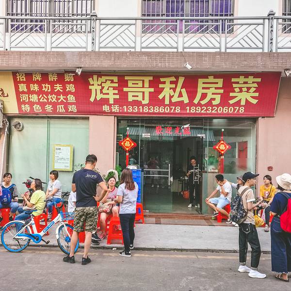 当然,我们此行打卡未遂的不光有大头华烧鹅。 一波打卡未遂的餐厅即将进入战场! 《寻味顺德》中以桑拿鸡、桑拿鱼火遍全国的辉哥私房菜如何? ——抱歉,今天的号已经取完了,请明天提前预定。 我们三当时的表情一定都是WTF! 上图中你看到的,竟然还都是已经有号还在排队进入就餐的人! OMG!从来没像现在这样,觉得吃口饭好难。