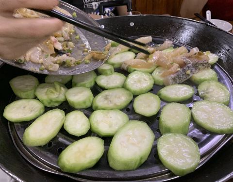 ...勉强够铺上丝瓜片,贵但抵不住它美味啊,原味鱼片加清香的丝瓜一起入口,舌头都能兴奋得跳舞,好好吃