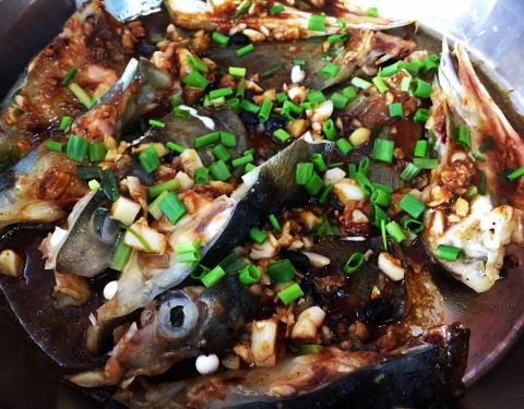 桑拿鱼,一鱼四味,鱼肉桑拿,鱼片丝瓜汤,鱼骨煎焗,鱼头豉汁蒸,鱼肉鲜味,桑拿鸡