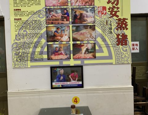 位于逢简水乡里的美食一条街上,“蒸猪”比较有特色,一份35元。 凉拌鱼皮味道不错,一份33元