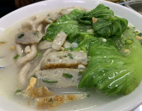 位于逢简水乡里的美食一条街上,“蒸猪”比较有特色,一份35元。鱼饼可以选择四拼,有鲮鱼、墨鱼、猪肉、牛肉四种口味,一份20元。 凉拌鱼皮味道不错,一份33元。 均安特色拆鱼羹,味道实在吃不来,小姑娘点了又不吃,可怜了我这个接盘侠,一碗10元,还不如我点的净云吞,汤头奶白,还可以续汤。