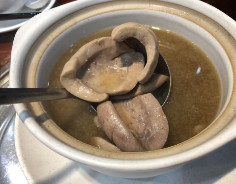 猪腰世家,祖传浸猪腰是招牌,点2个猪腰,还可以加鸡子和猪脑,姜酒恰到好处,猪腰特别大特别厚,口感灰常好,另外点了鹅膀和蒸鸡,量挺足的,蒜蓉蒸黄瓜有点味淡。