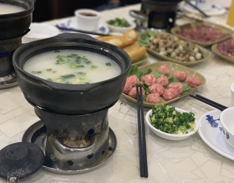 我们到的时候要排队,不过地方很大,大概排了十几分钟就到了,我们点了一些网上的推荐,一人一锅粥就开吃了