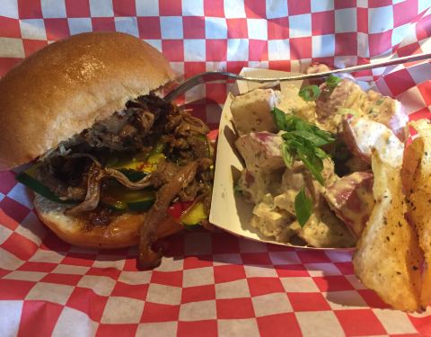 Smoky pork sandwich with potato salad side was a great Sunday lunch