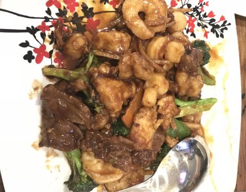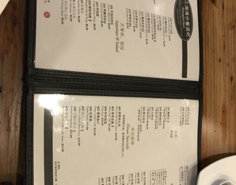 是中餐酒吧,吃中餐看菜名不会点餐,好在老板娘会中文,点了全家福和芽菜,全家福就是什么肉放一起煮,味道不错,酱香的;美国芽菜特别多汁特别脆,推荐去美国尝尝芽菜,口感真的特别好。 环境:在居民区,比较安全,停车不用钱;餐厅是美式餐吧布置,有情调又优雅。