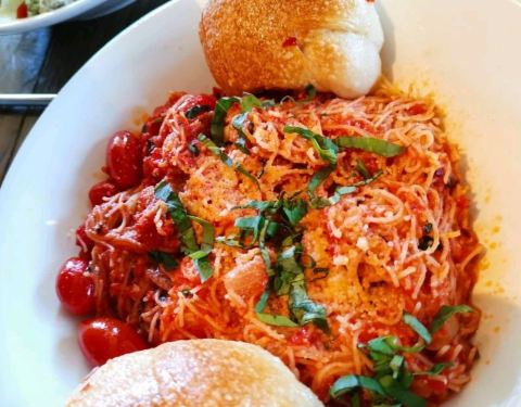 - ...里面看到的披萨饼了,里面的厚番茄酱很不错的,而且披萨真的超级大,吃一块也就够了,意大利面点多了